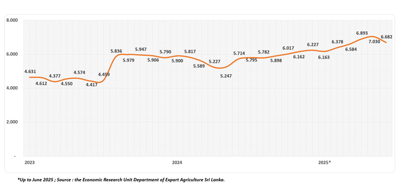 Monthly Farm Gate Price of Sri Lankan Black Pepper from 2023 - 2025* (USD/Mt)