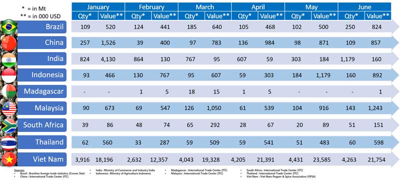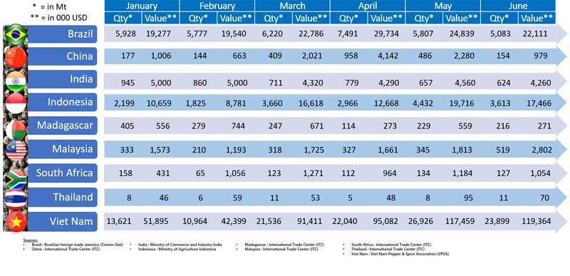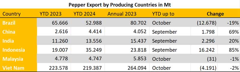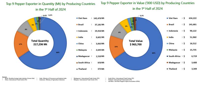 Pepper Export by Producing Countries in the 1st Half of 2024