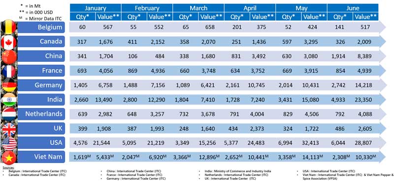 Pepper Import by Consuming Countries in the 1st Half of 2024