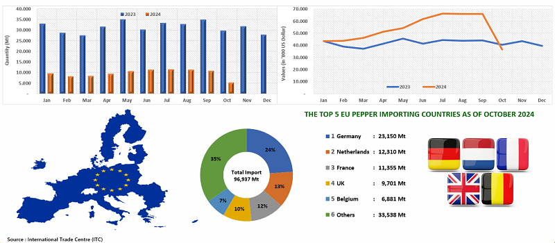 Import Of Pepper By EUÂ Countries 2023 - 2024