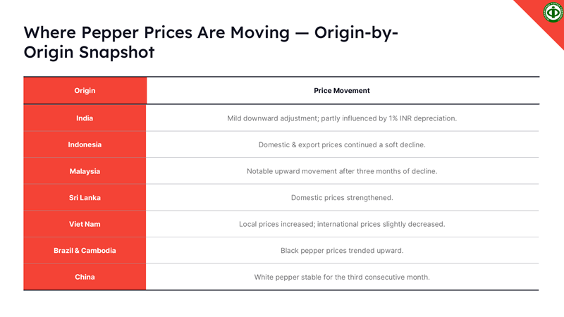 PEPPER MARKET REPORT - KEY HIGHLIGHTS