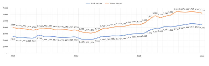 Composite Price of Black and White Pepper (US$/Mt)