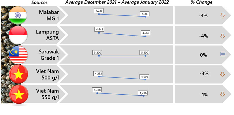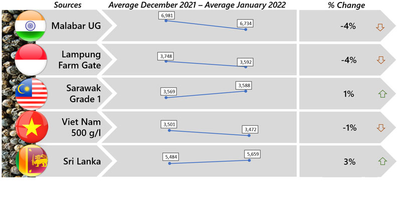 | 01 | World - Pepper prices at the beginning of 2022 showed a mixed response with Sri Lanka continued recording the highest increase. |