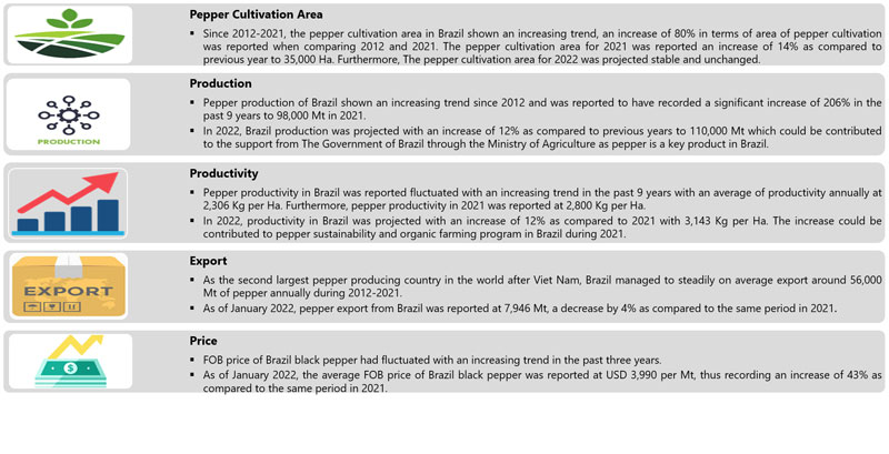 | 05 | Malaysia - The international pepper price for Malaysia was reported stable and unchanged, while the Malaysian local price responded positively this month. |