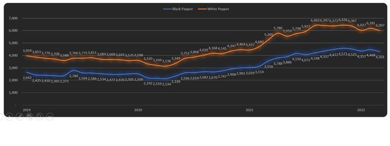 Composite Price of Black and White Pepper (US$/Mt)