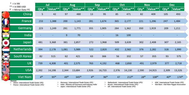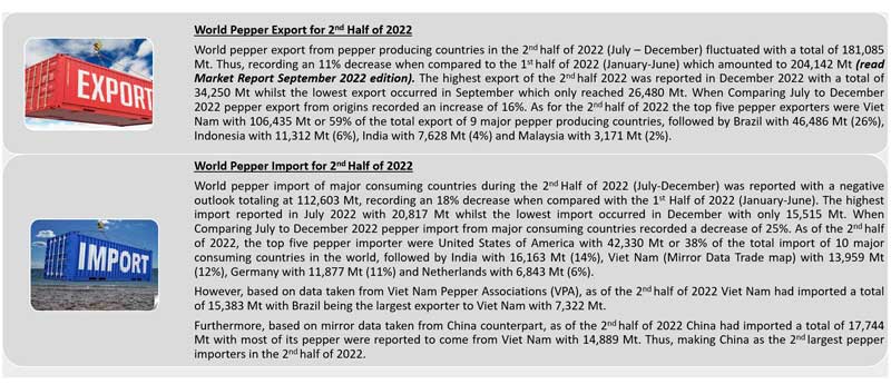 OVERVIEW OF WOLRD PEPPER EXPORT AND IMPORT IN THE 2nd Half of 2022
