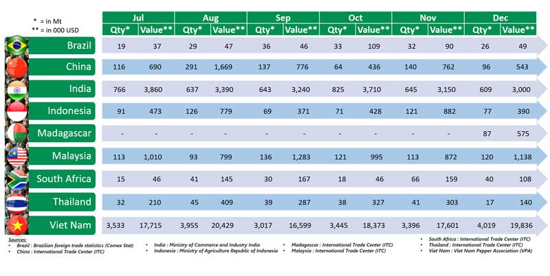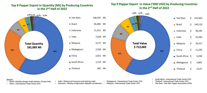 Pepper Export by Producing Countries for the 2nd Half of 2022