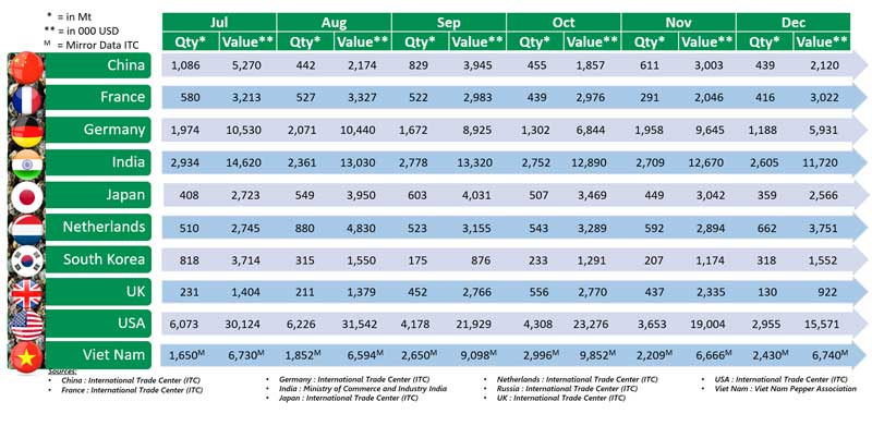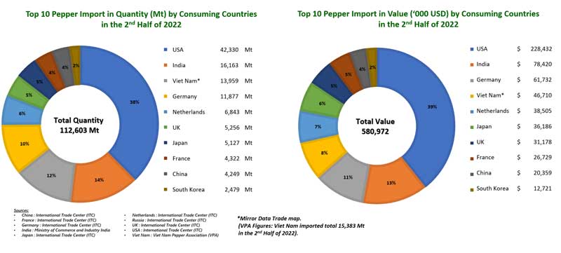 Pepper Import by Consuming Countries in the 2nd Half of 2022