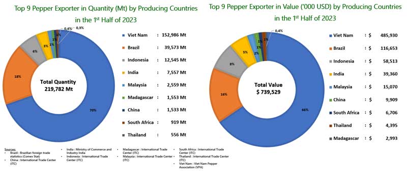 Pepper Export by Producing Countries in the 1st Half of 2023