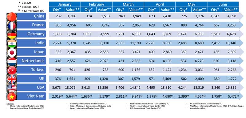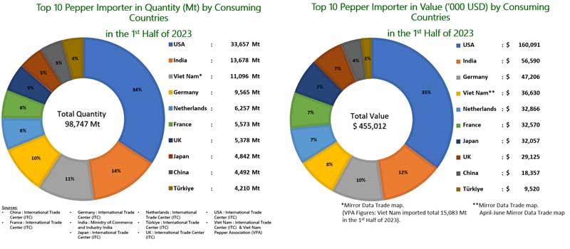 Pepper Import by Consuming Countries in the 1st Half of 2023