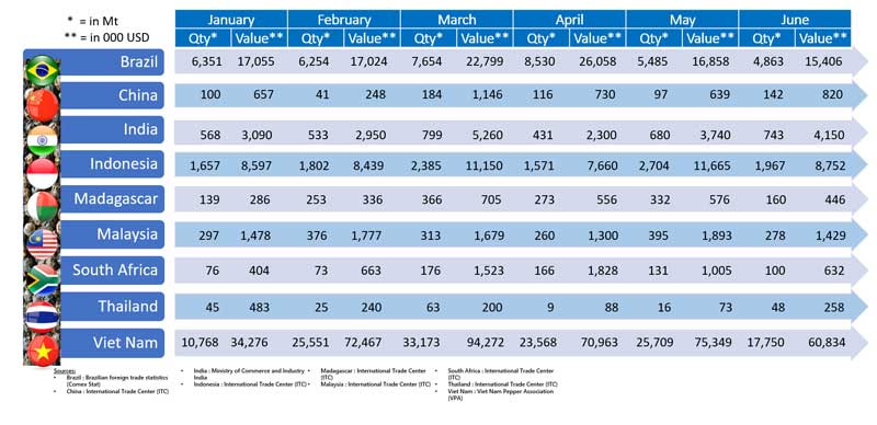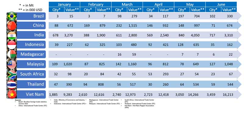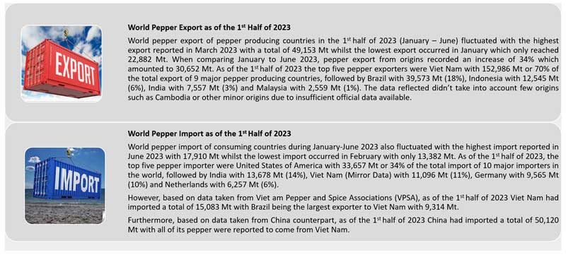 OVERVIEW OF WOLRD PEPPER EXPORT AND IMPORT IN THE 1st Half of 2023