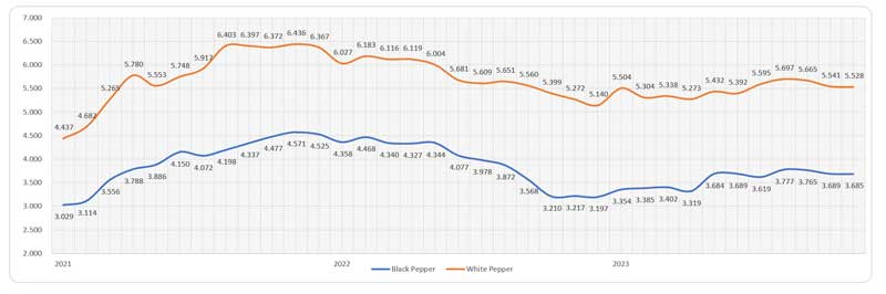 Composite Price of Black and White Pepper (US$/Mt)