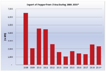 However, based on mirror data taken from China trade counterpart, China was reported to have imported a total of 63,790 Mt as of November 2019, thus, making China the second biggest importer of pepper in the world just behind United States. According to this mirror data, China's number one exporter was reported to be Viet Nam with 56,095 Mt as of November 2019.