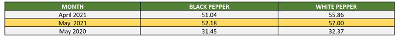 | 04 | Malaysia – Malaysian Prices for black and white pepper had increased significantly in May 2021 as compared to same period last year. |