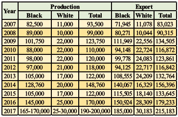 Rapid area expansion in the country has led Viet Nam becoming the leading country in pepper production and export. It was reported that together with import of around 35,000 Mt, Viet Nam has exported 215,000 Mt of pepper in 2017. Counting into account of estimated domestic consumption at around 10,000 Mt, production of pepper in 2017 would be minimum 190-200,000 Mt. It is understood that in the situation of low price, pepper harvested during the year was not totally sold out.