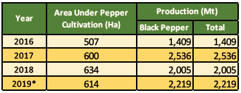 *Note: Productivity = Total production (Kg)/Area under pepper cultivation (Ha)