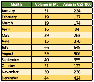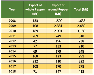 Table 8. Export of Pepper 2008 - 2018