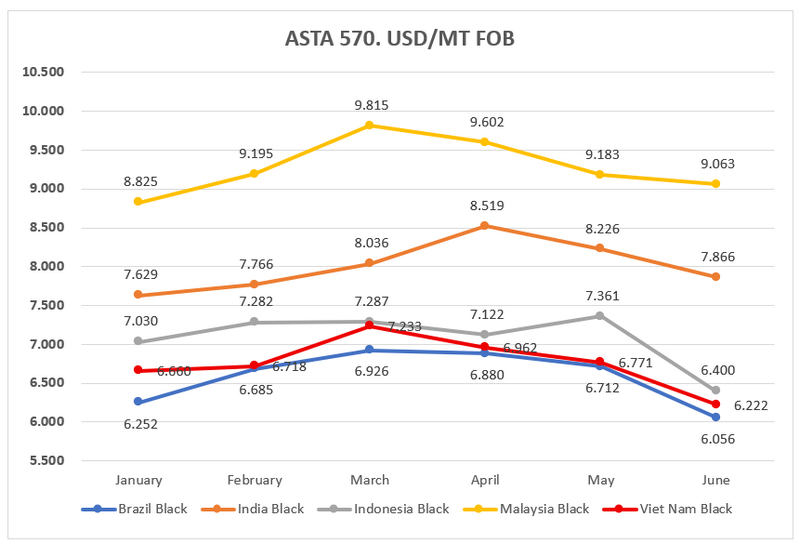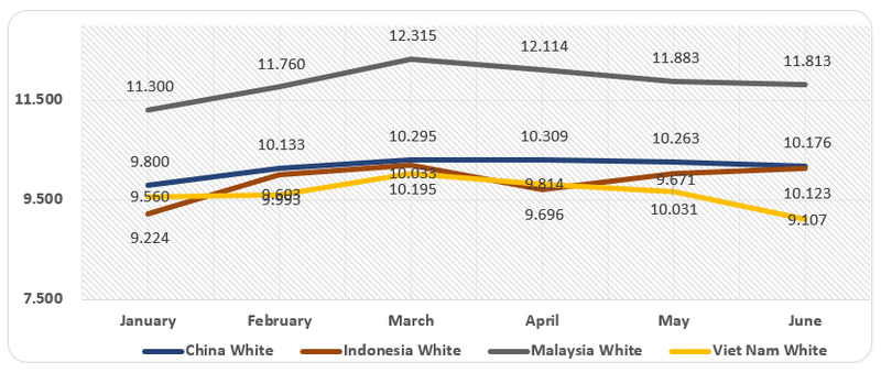 Viet Nam experienced gradual price gains from USD 9,560/MT in January to USD 9,814/MT in April, then adjusted to USD 9,107/MT in June, possibly influenced by inventory turnover and shipment timing.