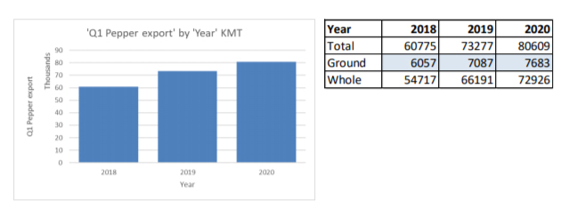 1.1. This is the largest export for the first quarter ever since Vietnam has been exporting black pepper.
