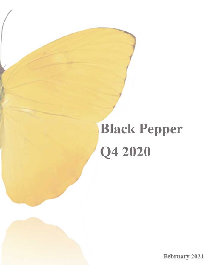 Executive SummaryDear Subscribers, 2020 will go down in history as the year the world had to reset itself. The trigger point of reset is known to all and came in 2019 in the form of virus, infamously known as Covid-19. The impact on the world was so massive that we all had to lock down ourselves from each other. Travel and Businesses came to a standstill. In the wake of this pandemic the global pepper markets also went through a reset. The expected drop in demand was no severe. On the other hand, due to a lagging growth in supply led to rise in prices by almost 20% in the second half of 2020. We thank you for your wholehearted participation in the IPC Online annual meeting. This quarterly edition of our Black Pepper update, which has been together by our team of experts, brings to you trade data and some insights based on the same. We wish you all the best and a very successful year 2021. |