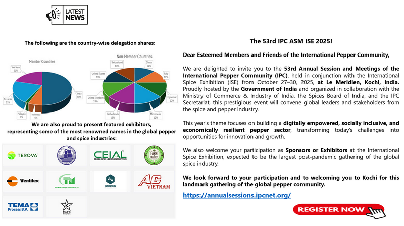 IPC DOES NOT set the price of pepper; IPC only publishes the prevailing price of pepper as reported from various origins and sources. Some of the data in this publication are from the IPC Secretariat database. The data were obtained from the official reports and correspondence between the IPC and has been processed based on statistical norms that can be accounted for.