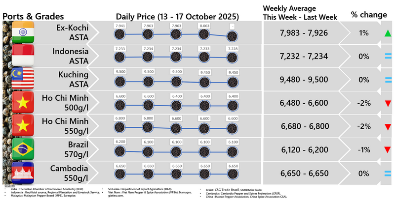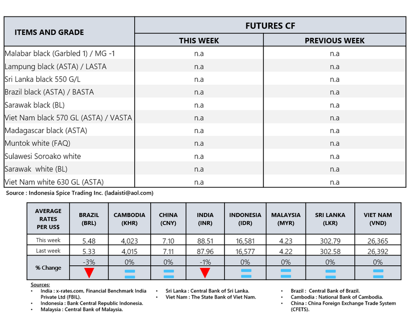 - Producers prices ex Lampung and Pangkal Pinang are average prices received by farmers for unprocessed pepper