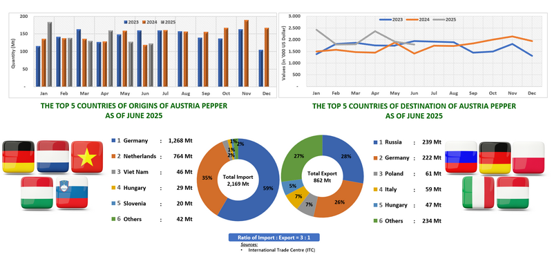 EXPORT OF PEPPER BY AUSTRIA (2023 - 2025)
