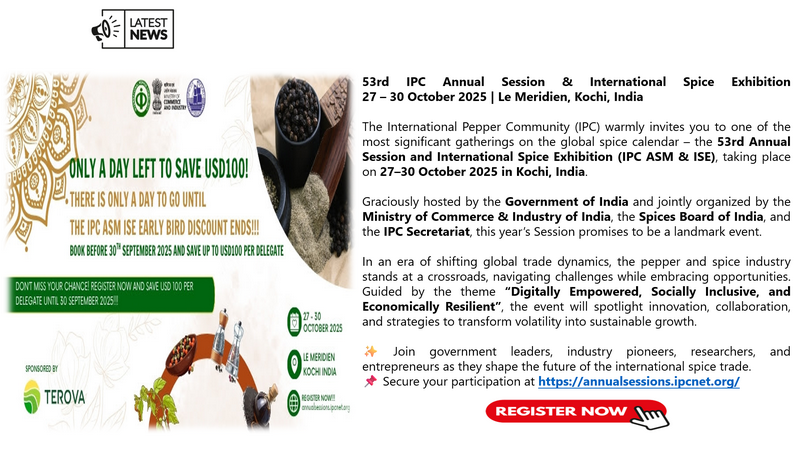 IPC DOES NOT set the price of pepper; IPC only publishes the prevailing price of pepper as reported from various origins and sources. Some of the data in this publication are from the IPC Secretariat database. The data were obtained from the official reports and correspondence between the IPC and has been processed based on statistical norms that can be accounted for.