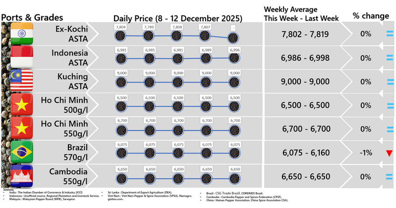 IPC DOES NOT set the price of pepper; IPC only publishes the prevailing price of pepper as reported from various origins and sources. Some of the data in this publication are from the IPC Secretariat database. The data were obtained from the official reports and correspondence between the IPC and has been processed based on statistical norms that can be accounted for.