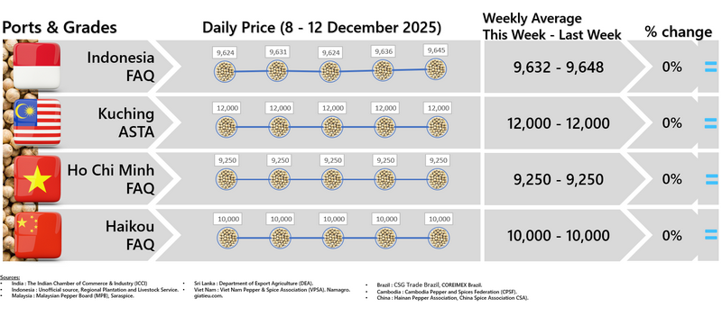 - Producers prices ex Lampung and Pangkal Pinang are average prices received by farmers for unprocessed pepper