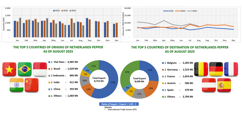 EXPORT OF PEPPER BY NETHERLANDS(2023 - 2025)