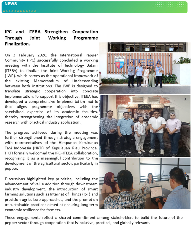 | Malaysia domestic and international pepper prices showed no significant movement in the first week of February, indicating continued price stability. | |