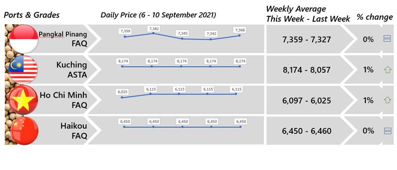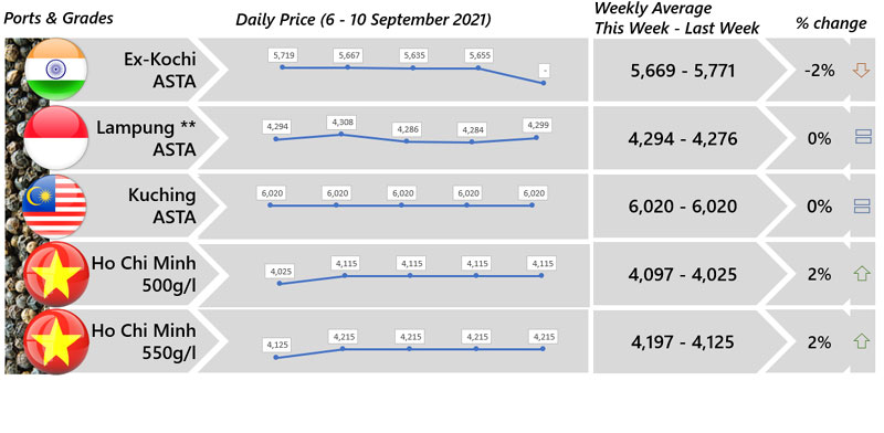 | 03 | Indonesia - Both black and white peppers price were reported stable although less quantity being traded. |