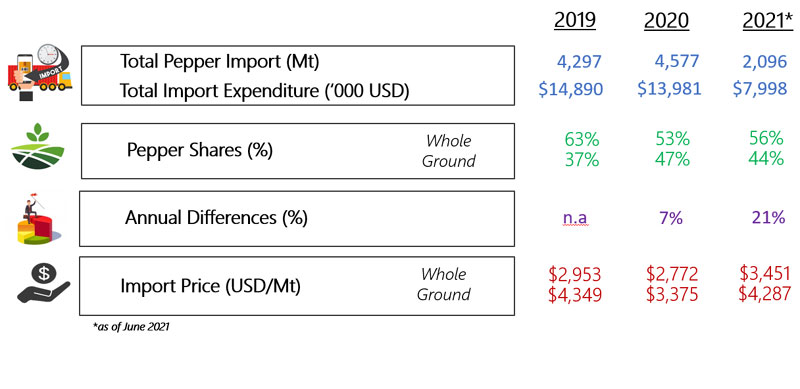 IMPORT OF PEPPER BY SWEDEN (2019-2021)
