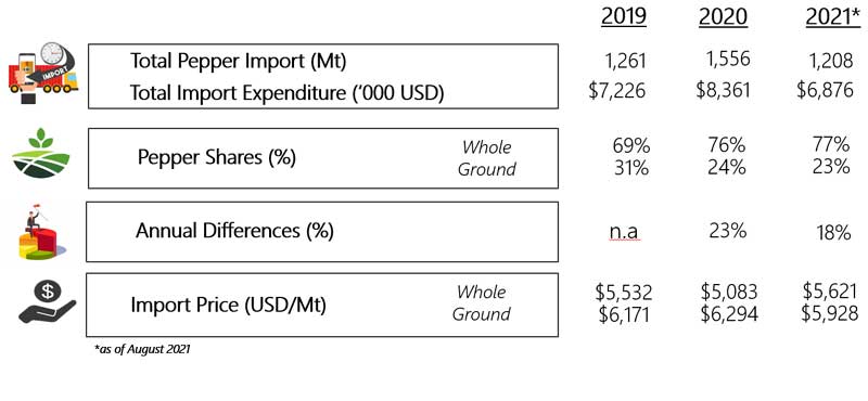 IMPORT OF PEPPER BY CZECH REPUBLICÂ (2019-2021)