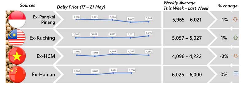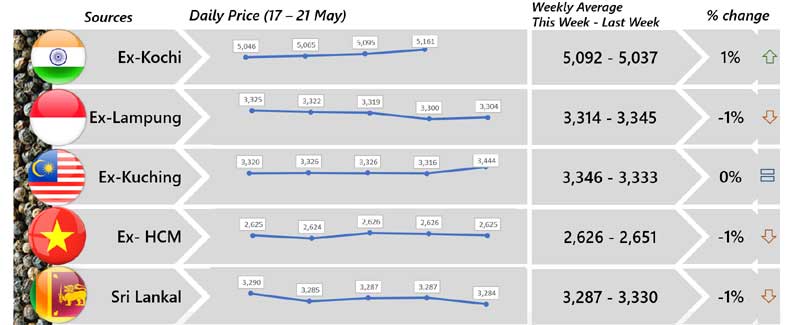 | 01 | World - Market this week showed mixed response due to the latest COVID-19 crisis, weakening local currency against the US Dollar and Eid Al-Fitr holiday break which put pressures on the pepper production and trading activities around the world. |