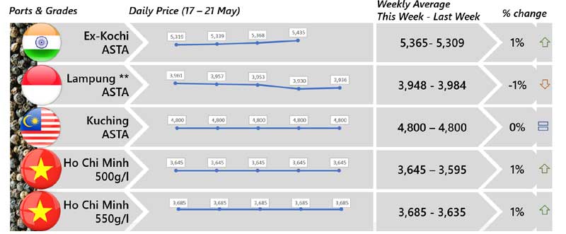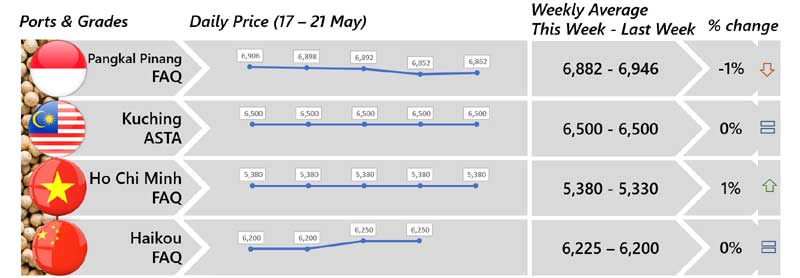 | 02 | Indonesia - Market slightly dipped with no business after Eid Al-Fitr holiday break. Decrease of the Indonesian price due to weakening of the local currency against the US Dollar. |