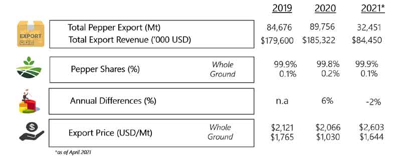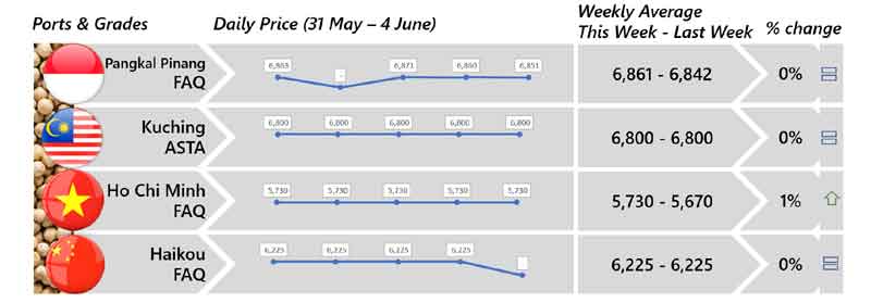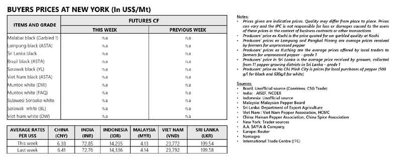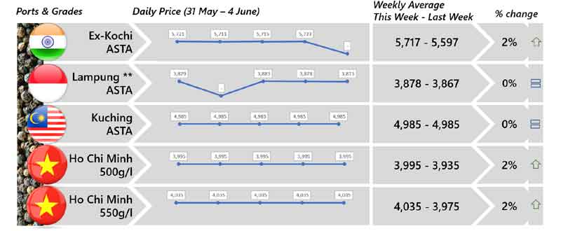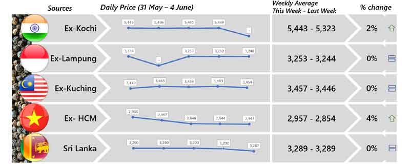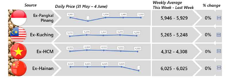 | 03 | Indonesia - Both black and white peppers price were reported stable although less quantity being traded. Furthermore, Bangka are preparing for its harvest season. |