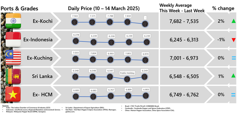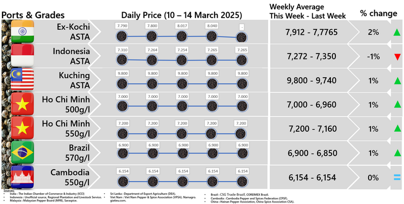 IPC DOES NOT set the price of pepper; IPC only publishes the prevailing price of pepper as reported from various origins and sources. Some of the data in this publication are from the IPC Secretariat database. The data were obtained from the official reports and correspondence between the IPC and has been processed based on statistical norms that can be accounted for.