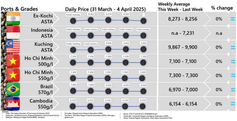 IPC DOES NOT set the price of pepper; IPC only publishes the prevailing price of pepper as reported from various origins and sources. Some of the data in this publication are from the IPC Secretariat database. The data were obtained from the official reports and correspondence between the IPC and has been processed based on statistical norms that can be accounted for.