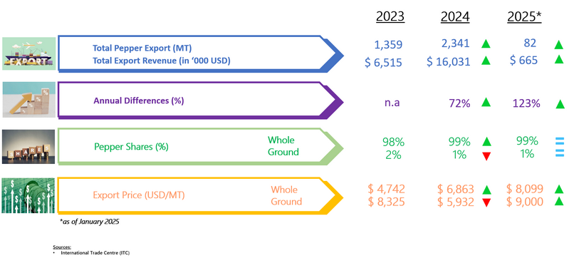 EXPORT OF PEPPER BY SINGAPORE (2023 - 2025)