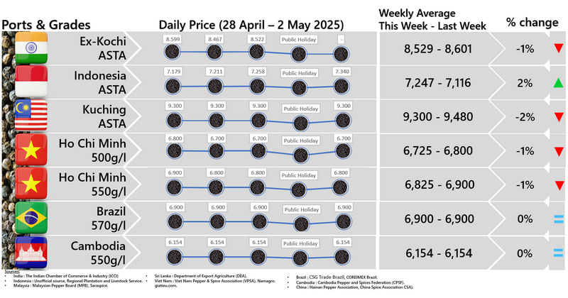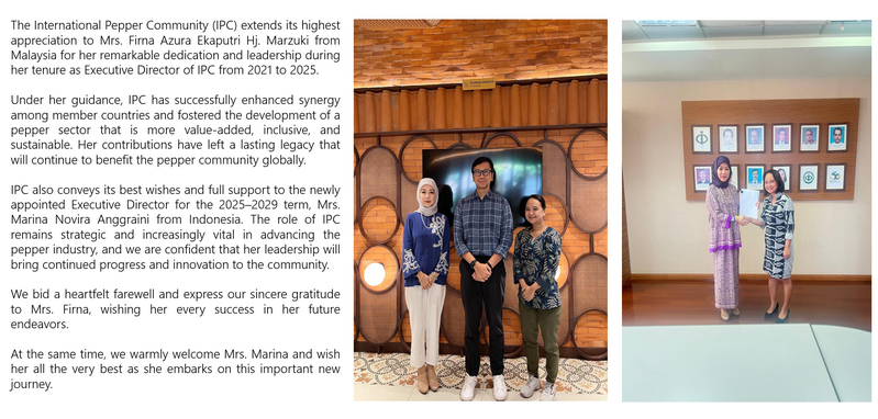 IPC DOES NOT set the price of pepper; IPC only publishes the prevailing price of pepper as reported from various origins and sources. Some of the data in this publication are from the IPC Secretariat database. The data were obtained from the official reports and correspondence between the IPC and has been processed based on statistical norms that can be accounted for.