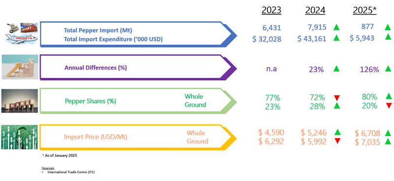 IMPORT OF PEPPER BY POLAND (2023 - 2025)