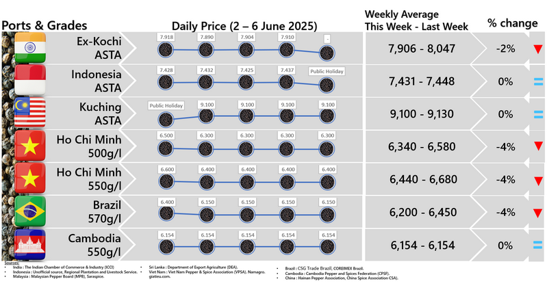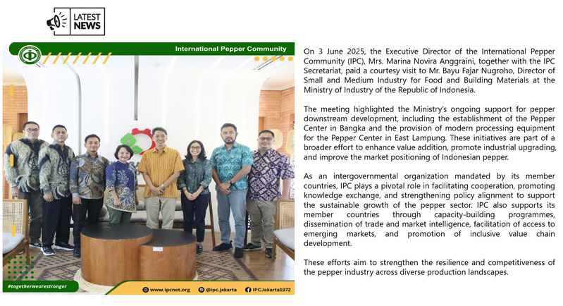 IPC DOES NOT set the price of pepper; IPC only publishes the prevailing price of pepper as reported from various origins and sources. Some of the data in this publication are from the IPC Secretariat database. The data were obtained from the official reports and correspondence between the IPC and has been processed based on statistical norms that can be accounted for.
