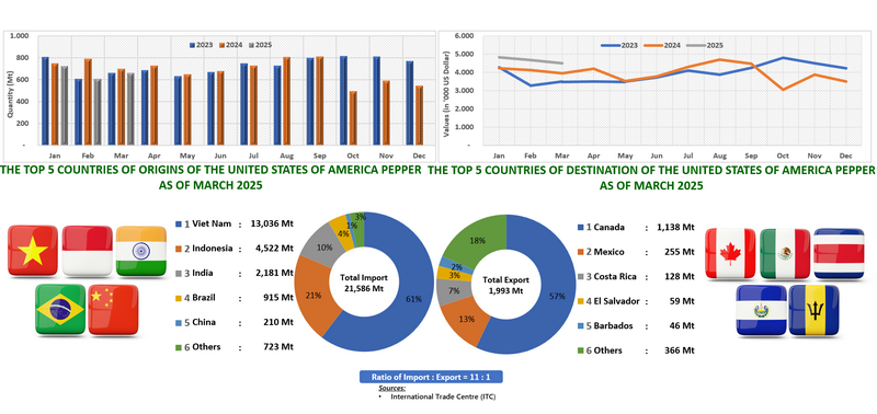 EXPORT OF PEPPER BY THE UNITED STATES OF AMERICA (2023 - 2025)