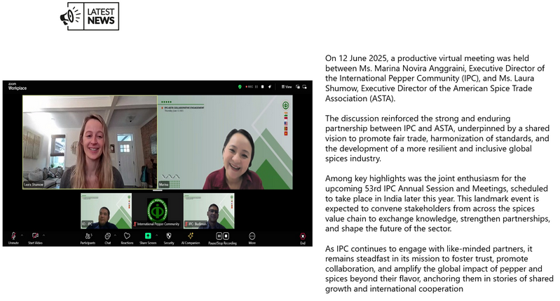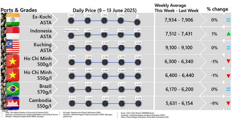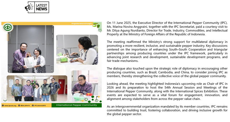 IPC DOES NOT set the price of pepper; IPC only publishes the prevailing price of pepper as reported from various origins and sources. Some of the data in this publication are from the IPC Secretariat database. The data were obtained from the official reports and correspondence between the IPC and has been processed based on statistical norms that can be accounted for.