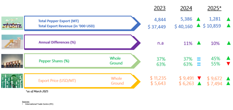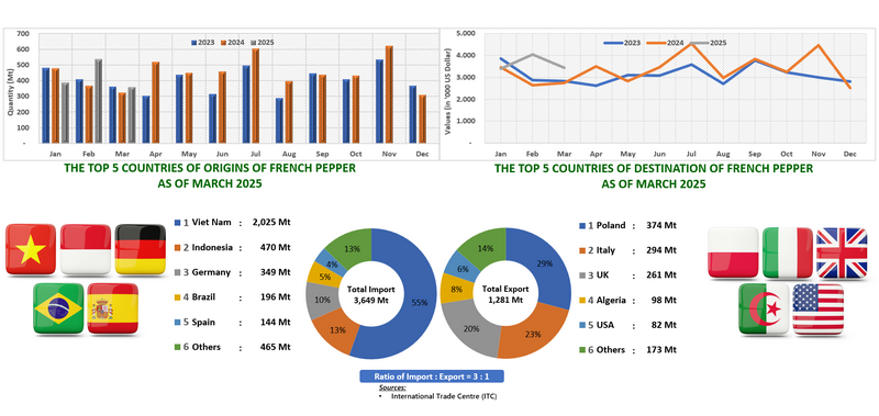 EXPORT OF PEPPER BY FRANCE (2023 - 2025)