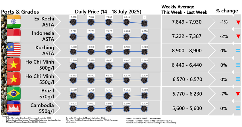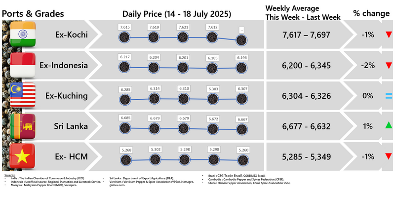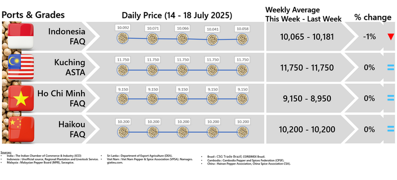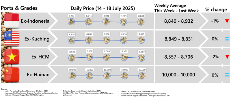 - Producers \'prices ex Lampung and Pangkal Pinang are average prices received by farmers for unprocessed pepper