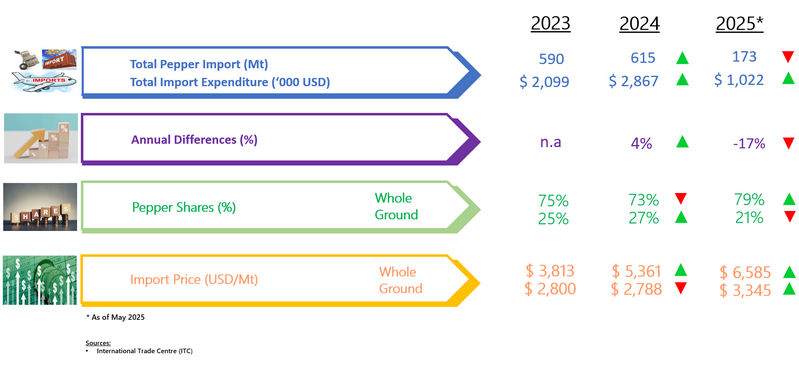 IMPORT OF PEPPER BY BAHRAIN (2023 - 2025)