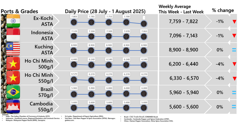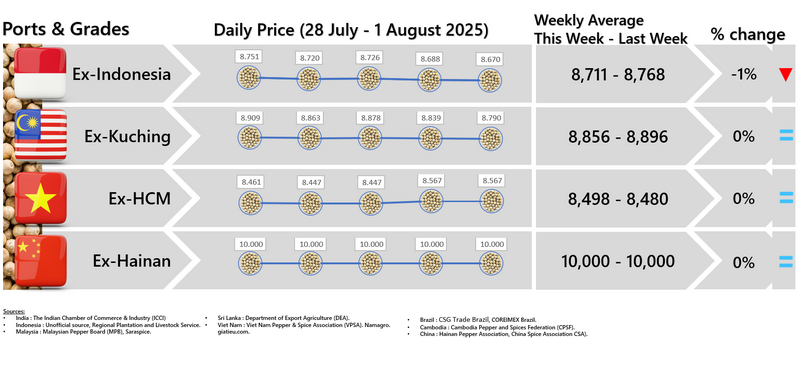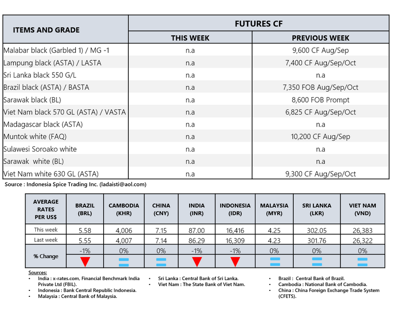 - Producers prices ex Lampung and Pangkal Pinang are average prices received by farmers for unprocessed pepper